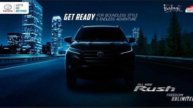 Akun Facebook ToyotaID sudah mengembangkan teaser dari Fortuner versi mini itu. Dalam foto itu dituliskan All New Rush dengan tagline 'Freedom Unlimited'. Meski tidak jelas, bentuk Toyota Rush terbaru sudah sanggup terlihat. Bagian depannya menyerupai mirip Fortuner.